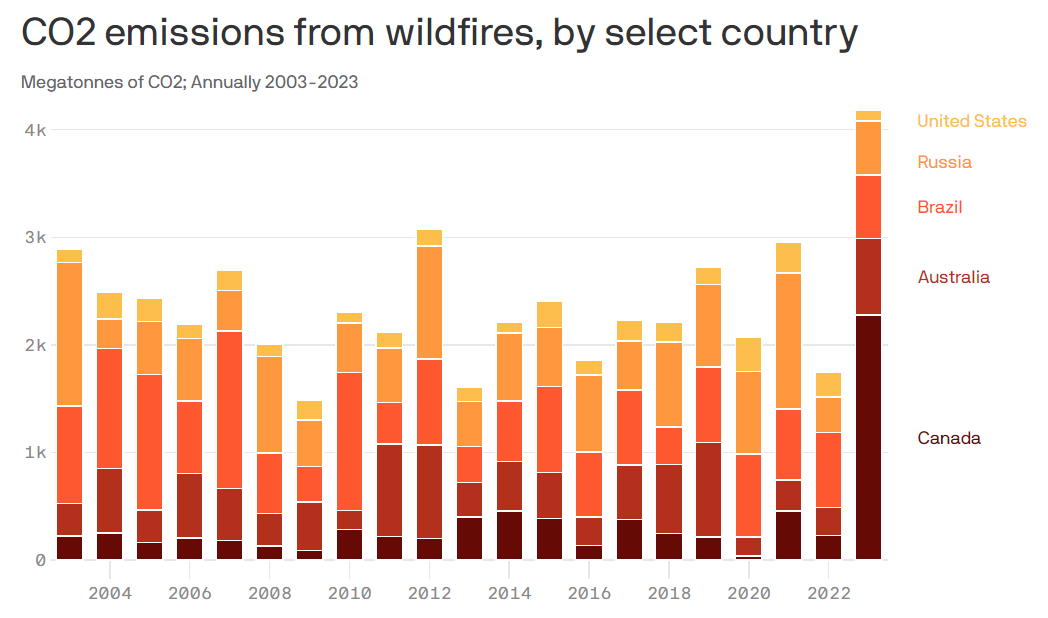 Data: Earth System Science Data. Chart: Thomas Oide / Axios