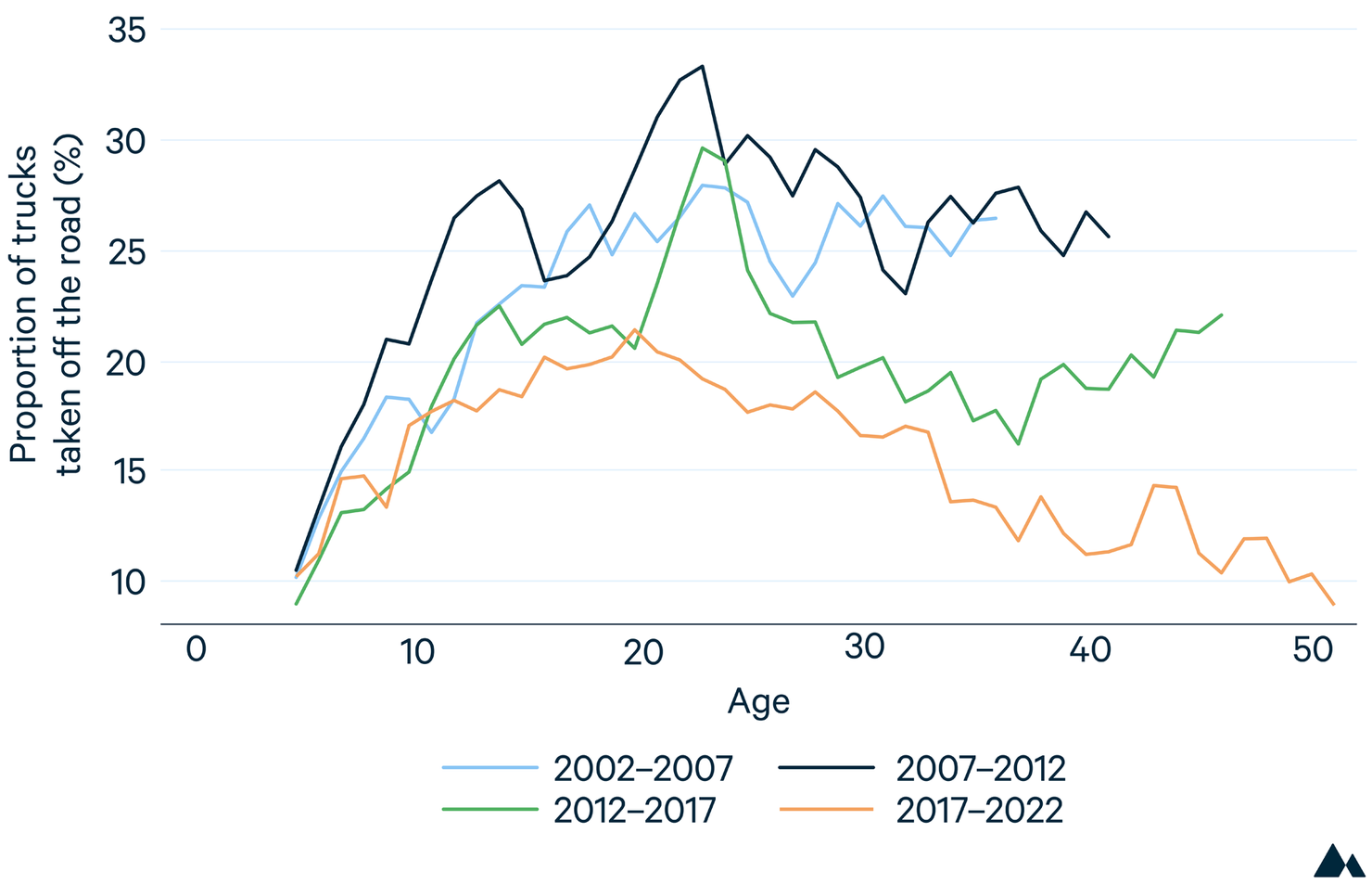 Figure 1. Proportion of Aging Trucks Taken Off the Road within Five Years of Last Registration