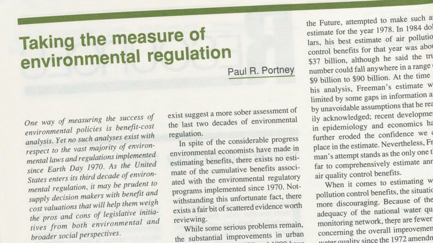Article from the Archive: “Taking the Measure of Environmental Regulation” by Paul R. Portney