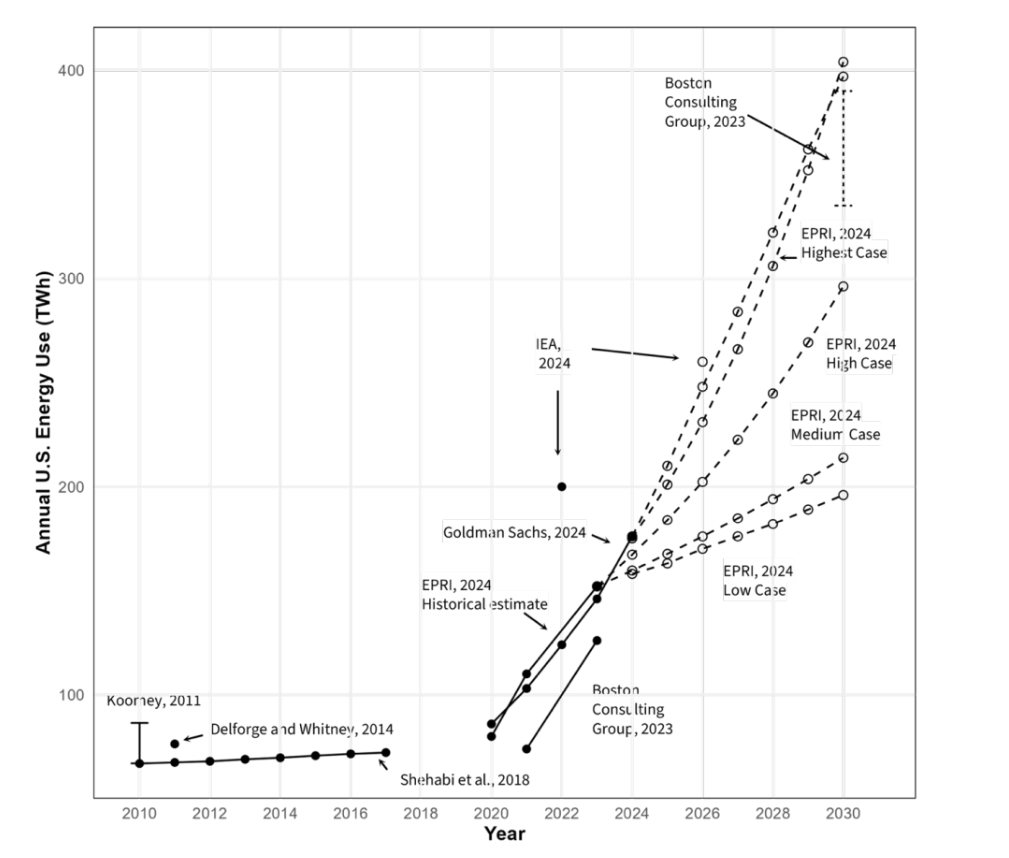 Figure 1. Historical Estimates of US Data Center Energy Use (Academic and Industry Sources)